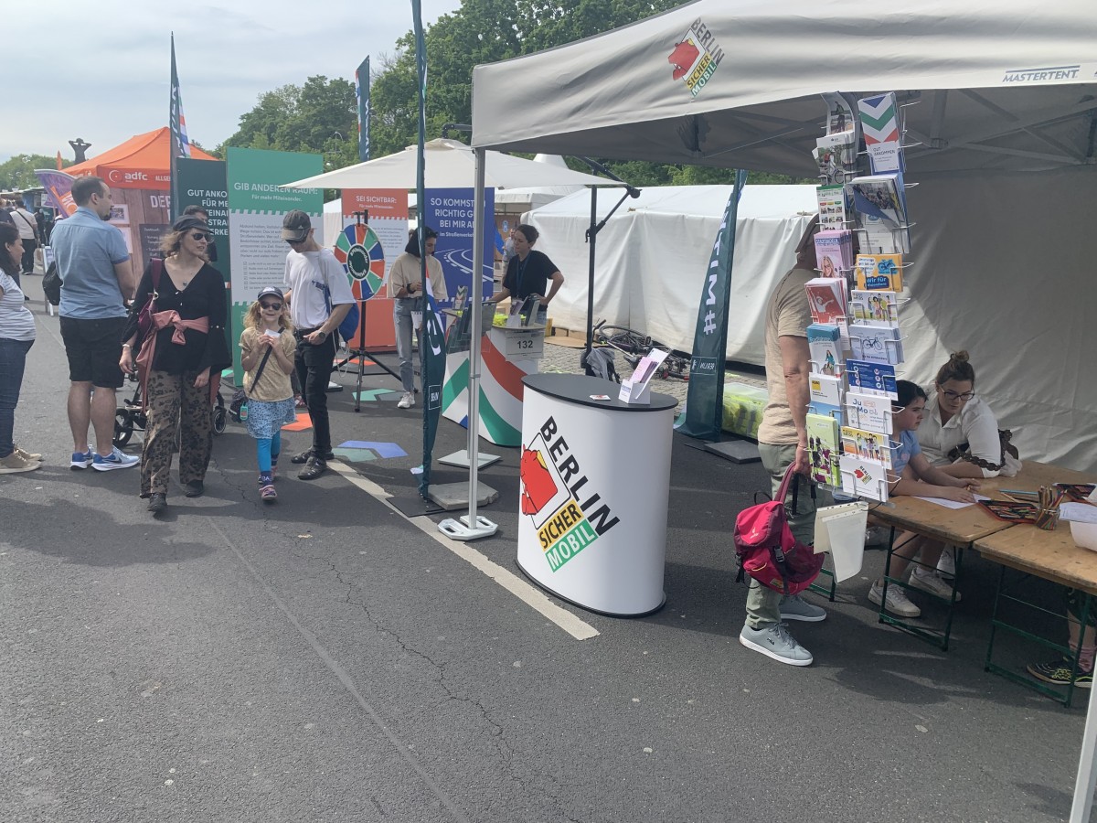 Bei dem diesjährigen Umweltfestival ging es rund um das Thema Upcycling. Bei unserem Stand konnten Kinder und Jugendliche aus alten Flyern, die sonst im Mülleimer gelandet wären, einen Reaktionstest besateln. Der Reaktionstest soll verdeutlichen wie wichitig es ist im Straßenverkehr aufzupassen, um schnellst möglichst auf Gefahrensituationen zu reagieren. Weiterhin hat die Senatsverwaltung ihre Kampagne #miteinander vorgestellt. Dazu wurden große Steelen mit den Leitmotiven sowie Erklärtexten aufgebaut. Außerdem konnten die Besucher*innen des Festivals an einem Glücksrad drehen und Goodies wie Reflektoren gewinnen.